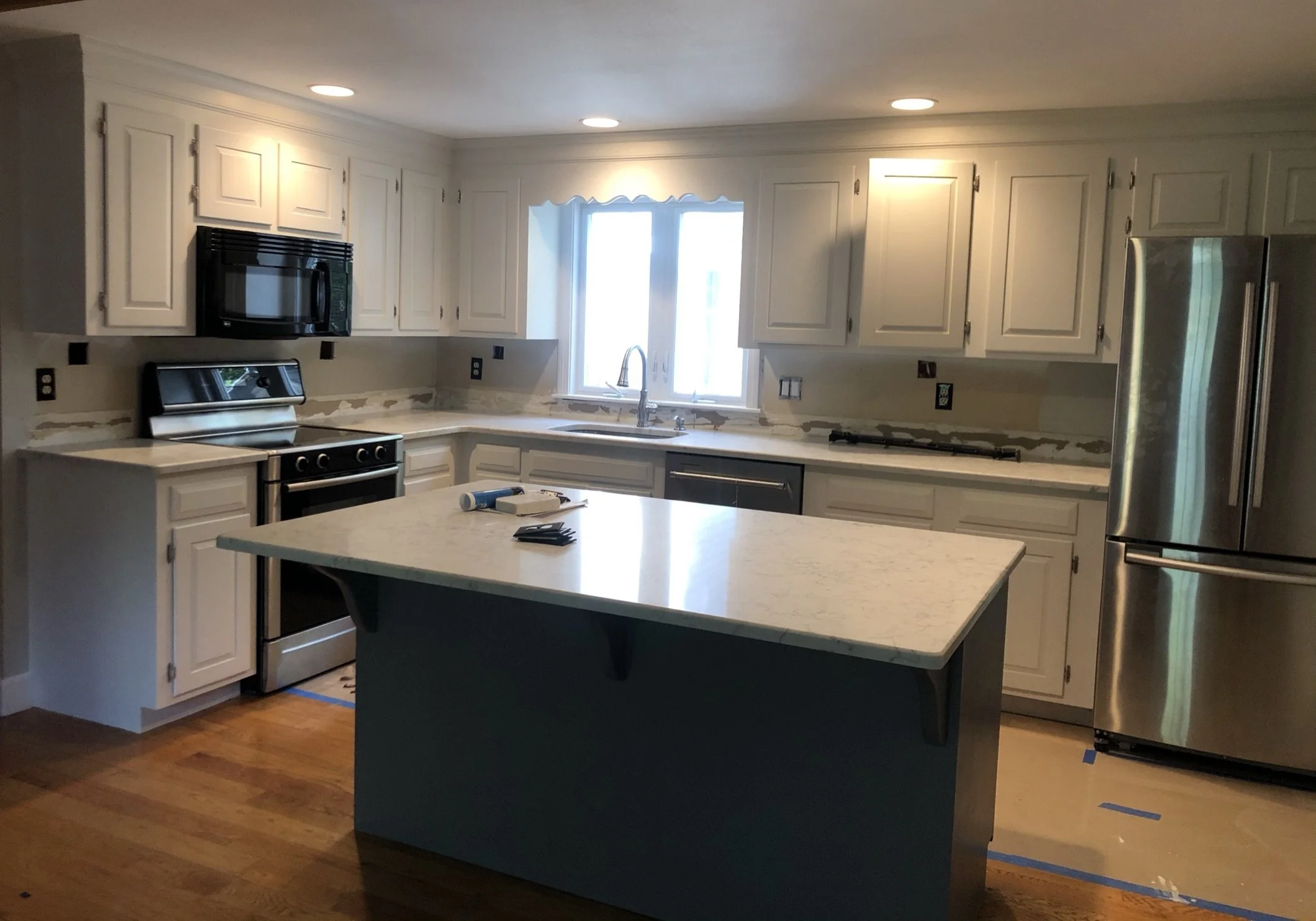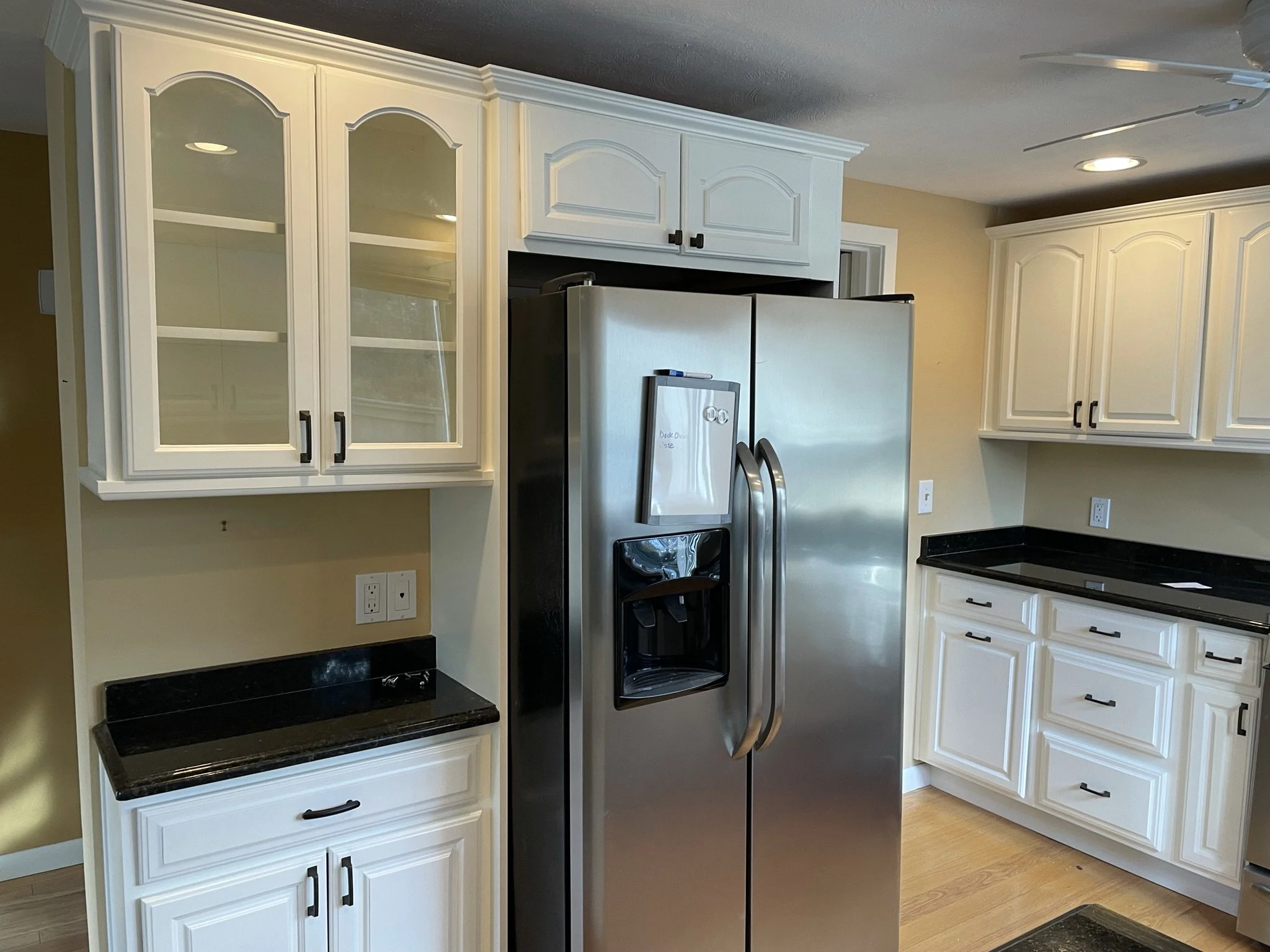 Kitchen refinishing nearing completion. Freshly painted cabinets bringing new life to the space.