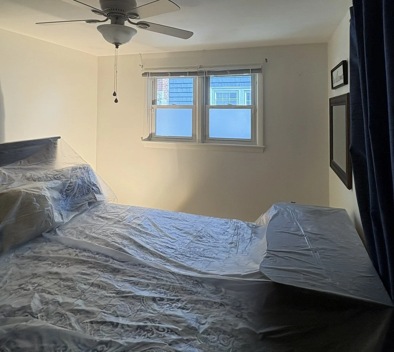 Bedroom ready for repaint. Full prep, clean masking, and attention to every surface.