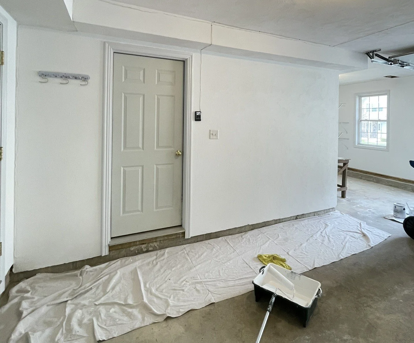 Repaint in progress, smooth coverage and precise wall preparation for durability.