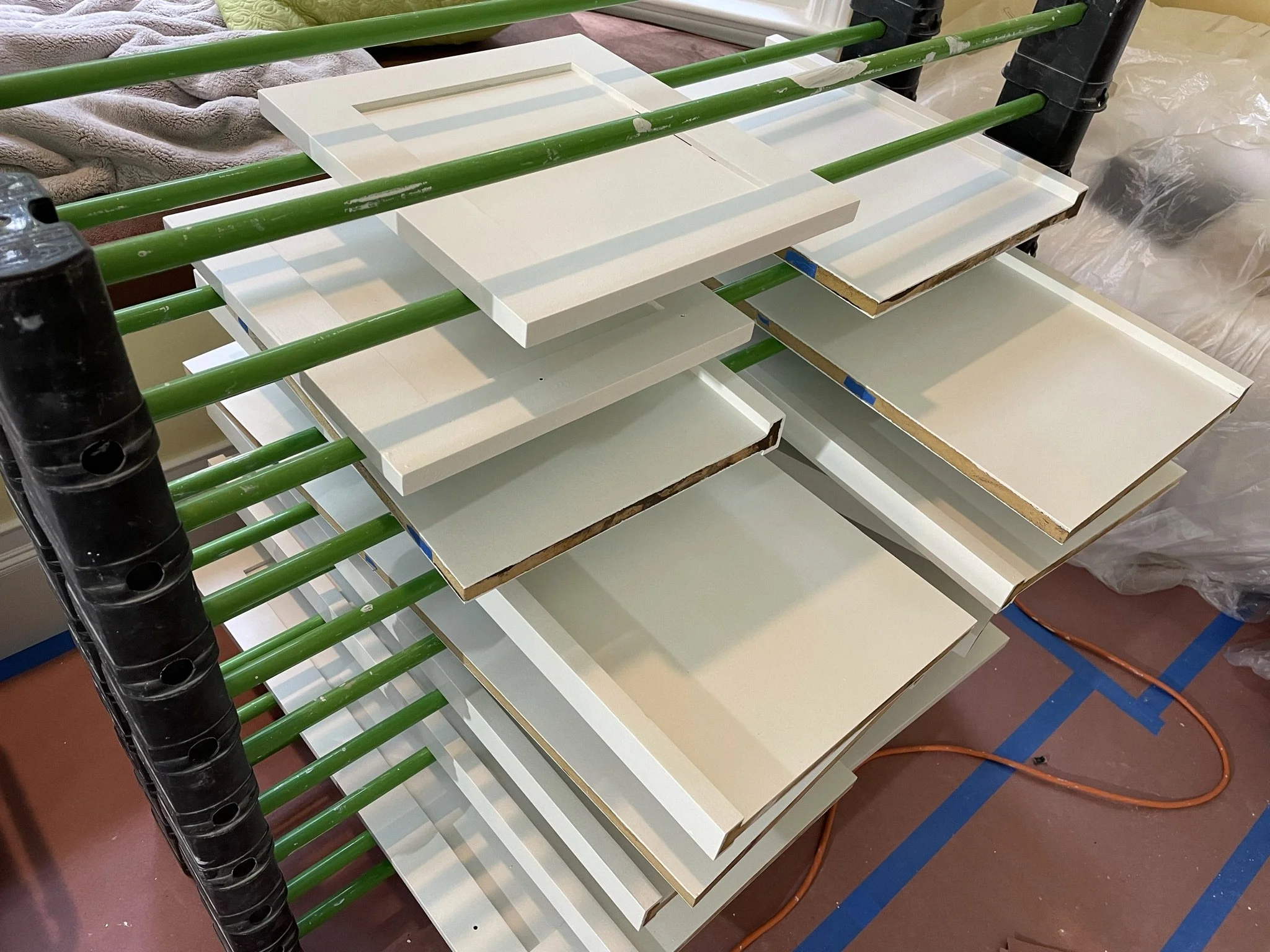 Final sanding after primer, making surfaces flawless and ready for HVLP-sprayed lacquer.
