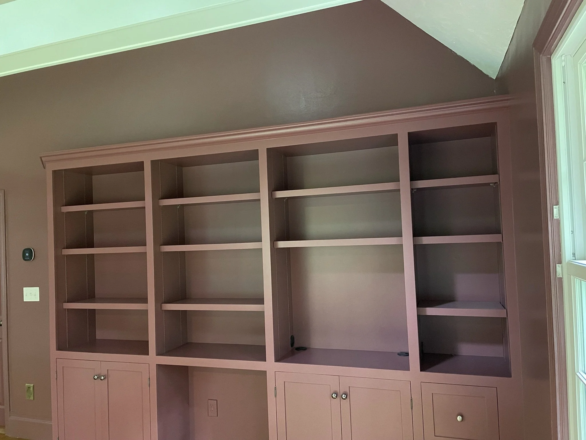 Walls and shelving painted to match. A bold, unified finish with perfect color harmony.